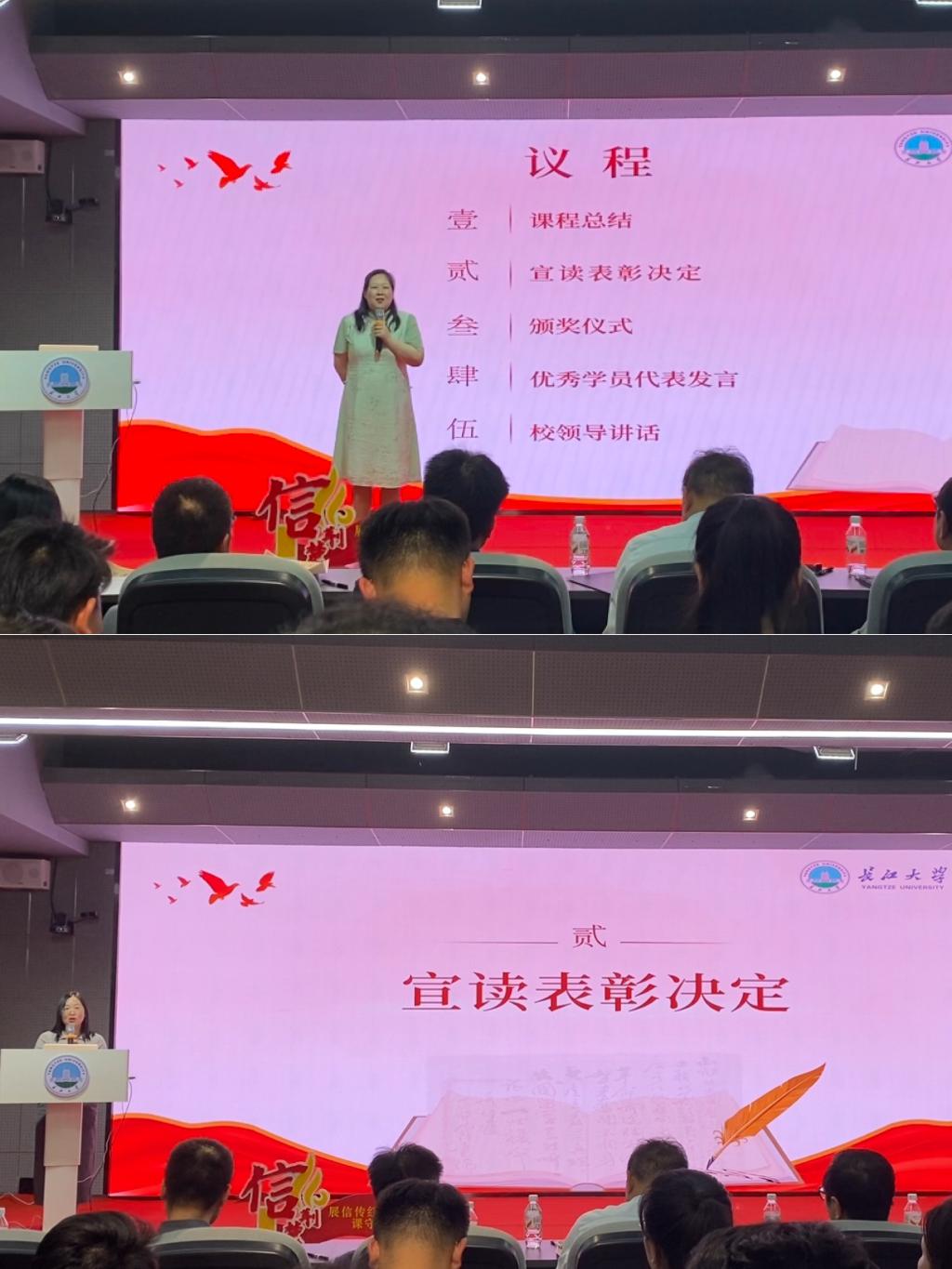 课程结束后还举行了《信•荆楚》第二季结课仪式暨颁奖典礼。15位同学、2个优秀小组获得表彰,相关职能部门负责人为获奖集体、个人颁发荣誉证书。