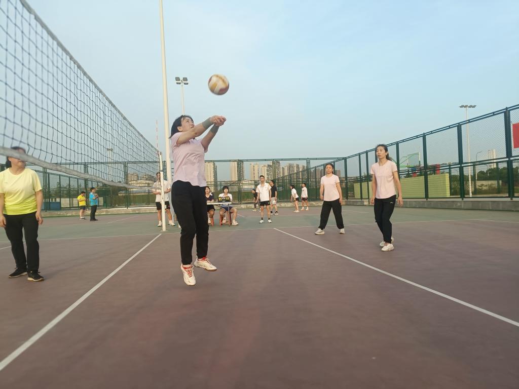 女子排球队在小组赛中表现亮眼,先后对阵人文学院、计科院等五支队伍,以五战四胜的成绩位列小组第二。队长汤波兰、徐先荣全程发挥核心作用,带领队员在攻防两端展现默契配合。训练中,张云、祝冬芹等老师践行“老带新”传统,刘小燕、张莉老师全程陪同,张三霞老师全力做好后勤保障。赛场上,张云雾、张小芳等队员们以“1、2、3”“我来”为默契口号,精准传球与有力扣杀频现,坚韧不拔的精神感染全场。