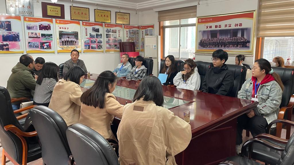 在东方红中学,姜晓靖书记详细介绍了该校的办学性质、办学特色、师生规模以及学生培养情况。在随后的座谈会中,姜书记重点对本院2022级学生的见习情况进行了介绍,对他们的表现给予了肯定。学院党委副书记汤慧珍介绍了av解说