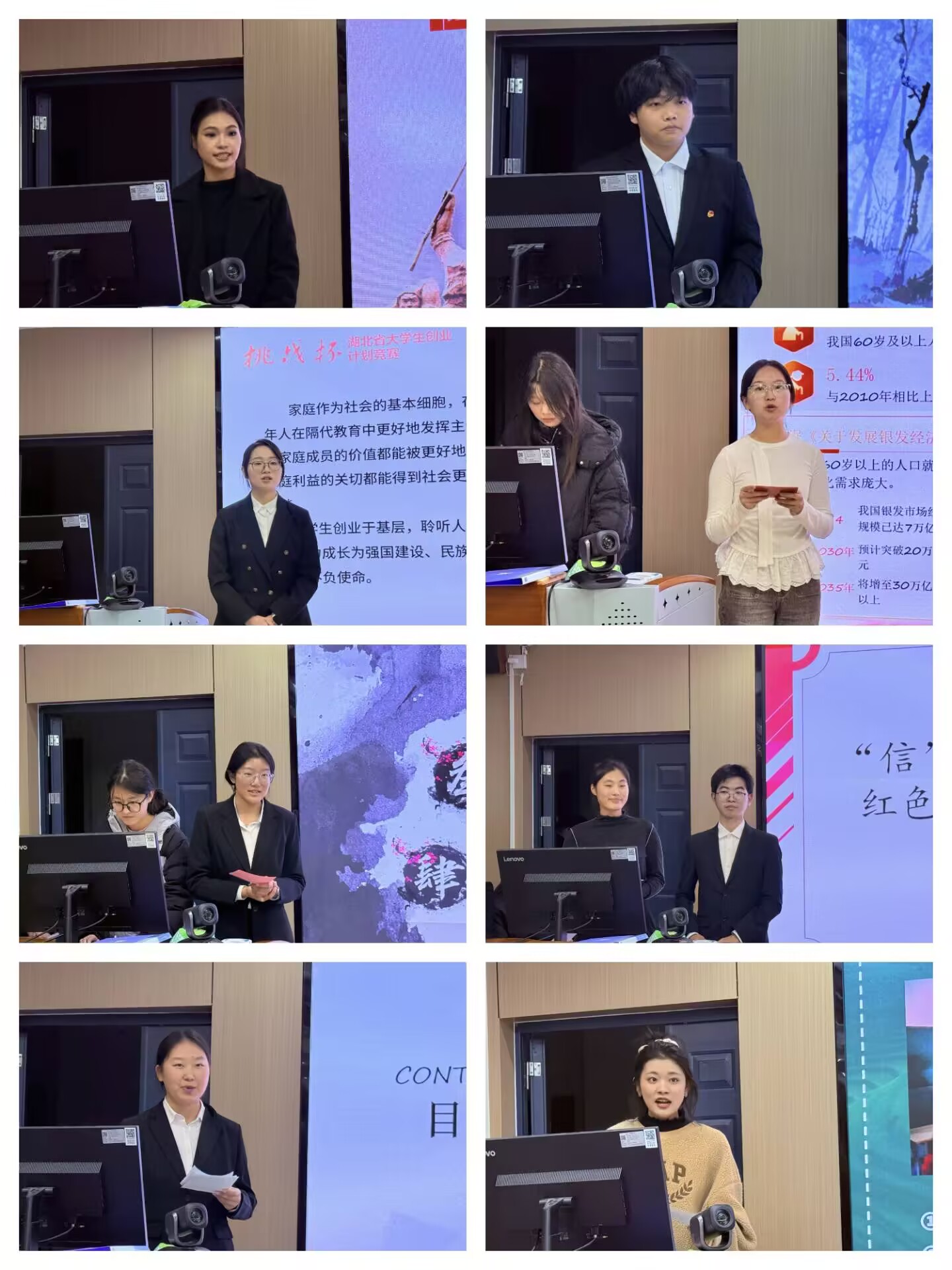 在文科楼1008室举行“长大杯”大学生创业计划竞赛暨“挑战杯”中国大学生创业计划竞赛院内选拔赛。学院团委书记张云雾、副教授邓鹏等老师担任评委,2025级本科新生与会观摩。